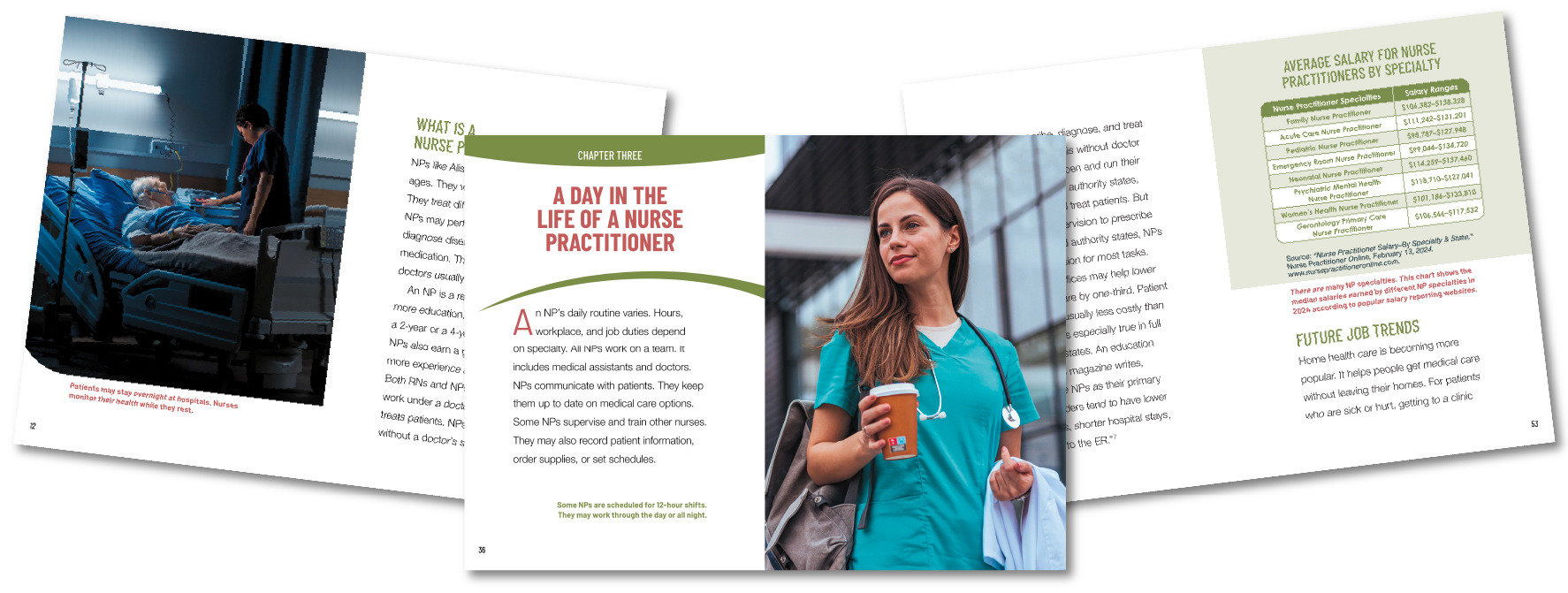 Hi-Lo YA nonfiction. In-Demand Careers looks at rising STEM-based careers in todays economy. The series explores each jobs responsibilities, education and training, and future outlook. Each book includes a graphic that presents key information visually, source notes, and resources to aid in further research.